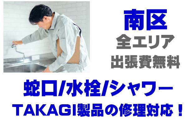 南区で水栓メーカーTAKAGIの修理業者をお探しなら当社までお気軽にお問い合わせください。蛇口の水漏れ、シャワーの故障などタカギ製に関するトラブルなら何でもご相談ください。